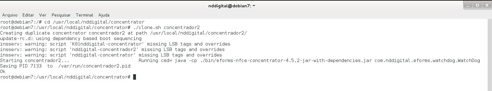 Passo 1: Acessar o repositório onde se encontra o arquivo clone.sh. que está no seguinte caminho "/usr/local/nddigital/concentrator/clone.sh".
