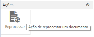O botão Reprocessar permite que documentos com o status de Rejeitado/Rejeitado Duplicidade sejam colocados novamente na fila de processamento e portanto, reprocessados.