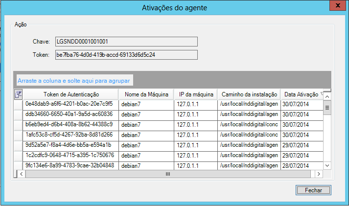 Para a correta ativação dos Agentes é explicitamente obrigatório que o Concentrador e Agente estejam online.