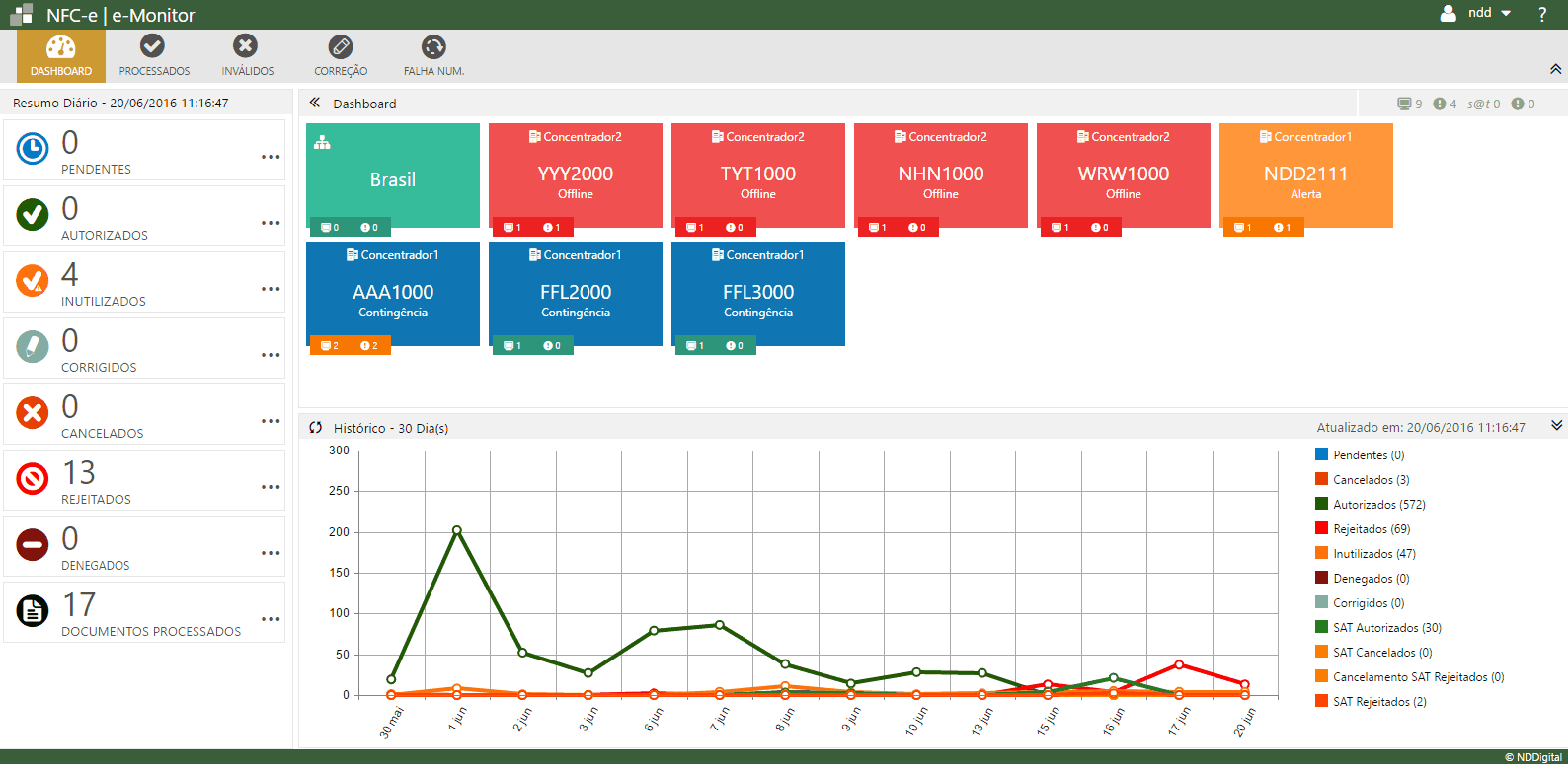 Nesta aba são exibidos os documentos capturados de uma forma de totalizadores com histórico e controle de agrupadores.