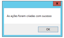 Após clicar em criar ação será exibida a mensagem abaixo: