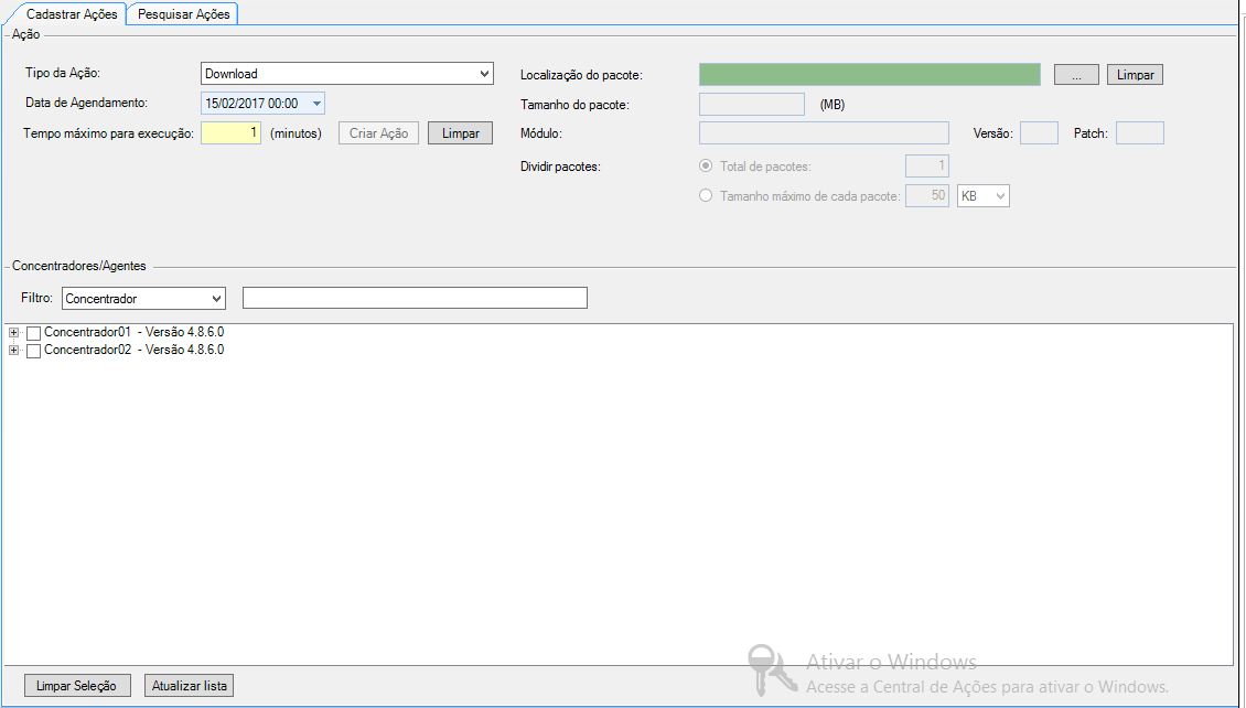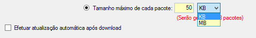 Para alterar o tamanho de cada pacote, basta clicar em Tamanho máximo de cada pacote: