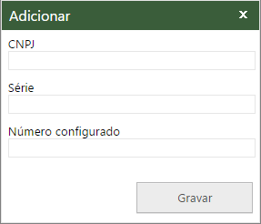 Nesta janela deverão ser cadastrados, o CNPJ da empresa, a série do documento e a numeração do documento.