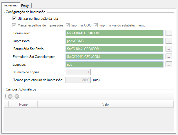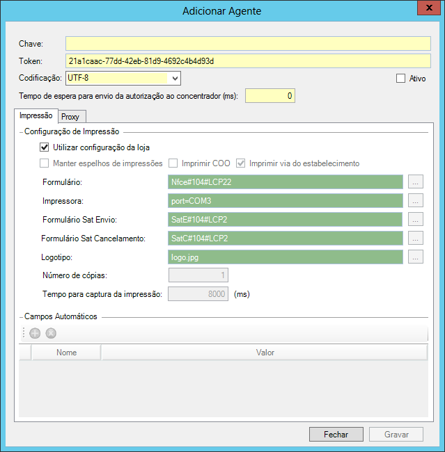 ▪Utilizar configuração da loja: Selecionando este campo, os demais dados referente a impressão serão importados da loja que o agente pertence.