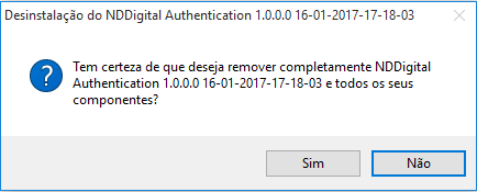 Tela inicial da desinstalação do Authentication. Para prosseguir, clique em Sim.