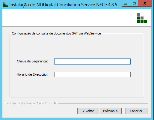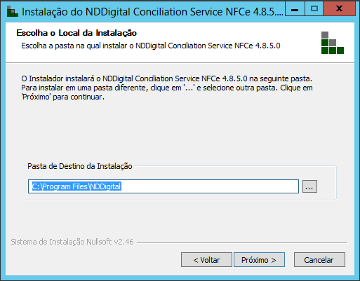 Passo 1: Execute o arquivo de instalação do Conciliation Service disponibilizado pela NDDigital. Você também pode fazer o download dos instaladores acessando o site da NDDigital, efetuando seu cadastro de usuário. Para isso, acesse www.nddigital.com.br.