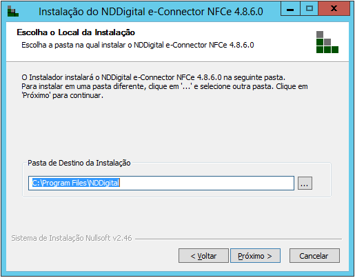 Execute o arquivo de instalação do e-Connector NFC-e disponibilizado pela NDDigital. Você também pode fazer o download dos instaladores acessando o site da NDDigital, efetuando seu cadastro de usuário. Para isso, acesse http://ndd.com.br/ e efetue seu cadastro.