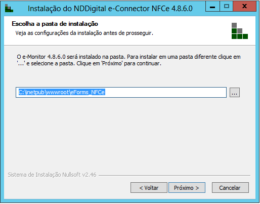 Na tela abaixo, se desejar, altere o diretório de instalação e então, clique em Próximo.
