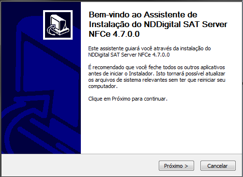 Passo 1: Execute o arquivo de instalação do Multi SAT NFC-e disponibilizado pela NDDigital. Você também pode fazer o download dos instaladores acessando o site da NDDigital, efetuando seu cadastro de usuário. Para isso, acesse http://ndd.com.br/.