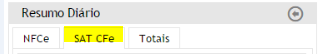 A Aba - SAT CFe só aparecerá caso tenham sido processadas notas SAT no dia. |