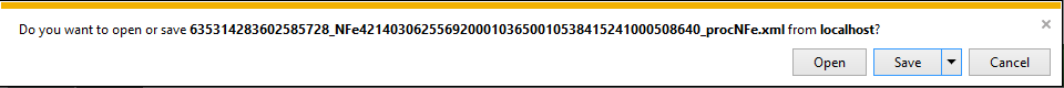 Em caso de não gerar múltiplos documentos, sendo selecionado apenas 1 documento no grid da pesquisa e apenas 1 formato for escolhido para o processo de download, não será necessário o usuário nomear a solicitação, pois o campo Identifique sua solicitação ficará desabilitado, após marcar o formato desejado e clicar em Concluir serão exibidas as opções Abrir ou Salvar o arquivo. Se a opção escolhida for Salvar, deve-se escolher um diretório para a exportação do documento.