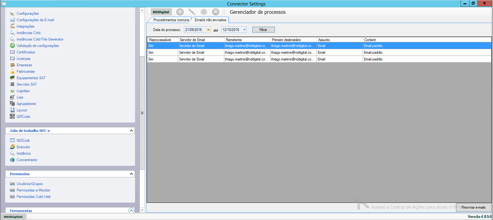 Aba Emails não enviados