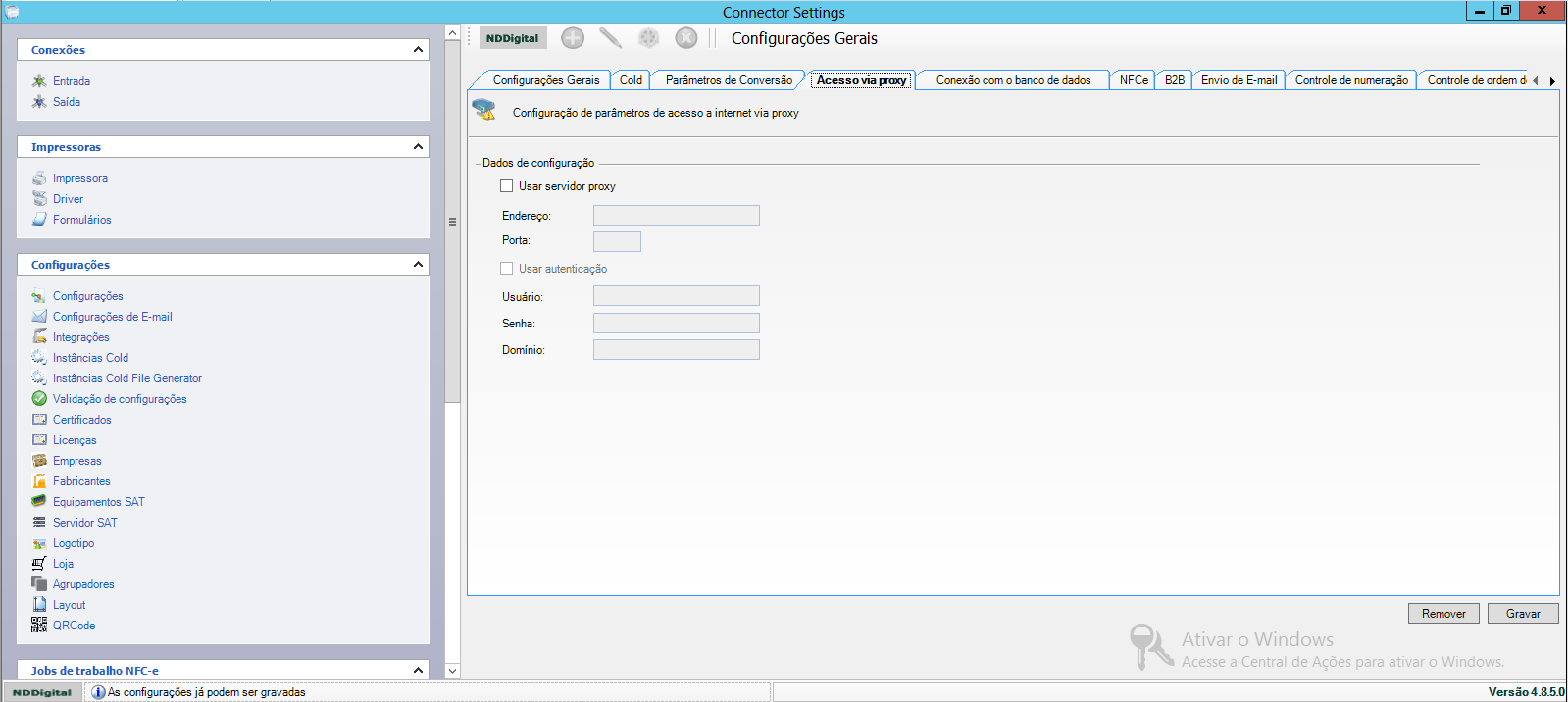•Acesse o menu Iniciar> Programas> NDDigital> e-Connector Settings.