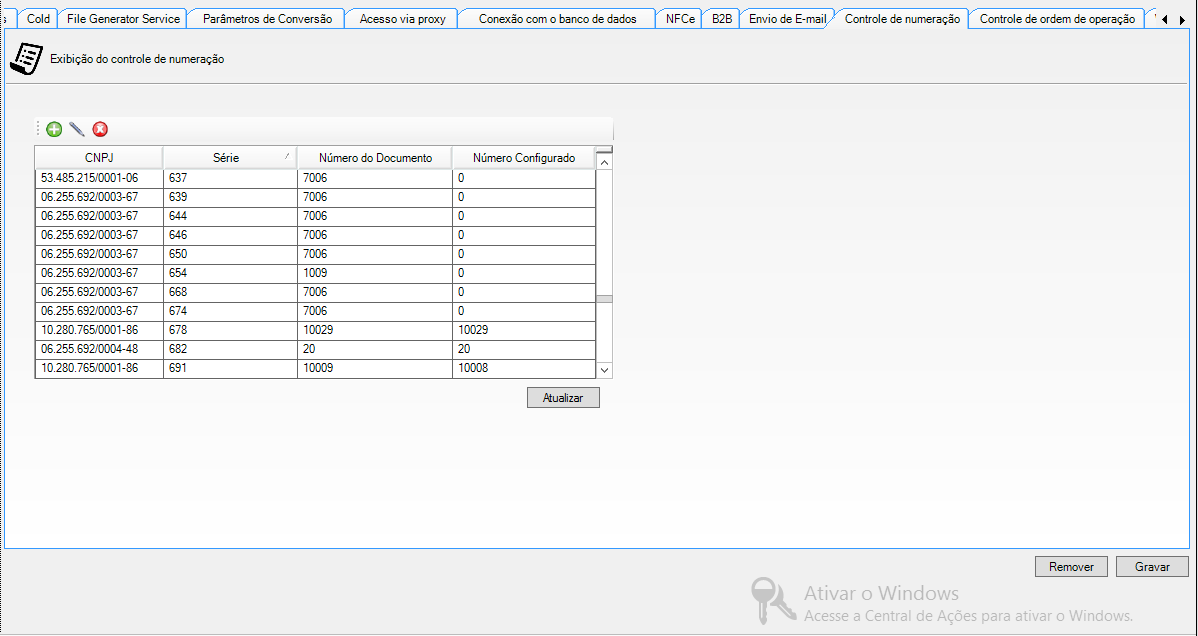 Essa aba tem como objetivo possibilitar a visualização da Série e Número de Documentos pertencentes a um CNPJ. Estas informações serão utilizadas pelos processos de Consulta Último Número Processado (ped_num) e Atribuir Número a Processar (set_num), realizados pelo PDV.