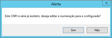 Ao tentar inserir uma série já cadastrada para um CNPJ, o sistema exibirá a seguinte tela: