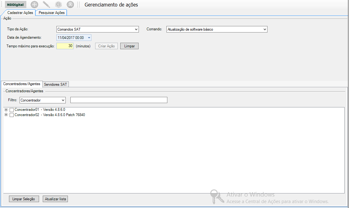 •Selecione o agente que possui o equipamento SAT a ser atualizado. Nesta lista só serão exibidos os agentes que possuírem um equipamento SAT.