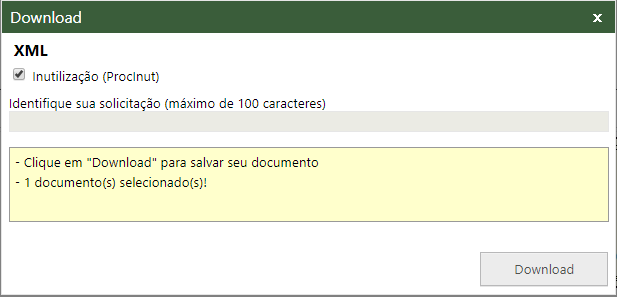 Realizado todos os passos, clique em Download e será informado ao usuário o sucesso ou não da geração de sua Solicitação.