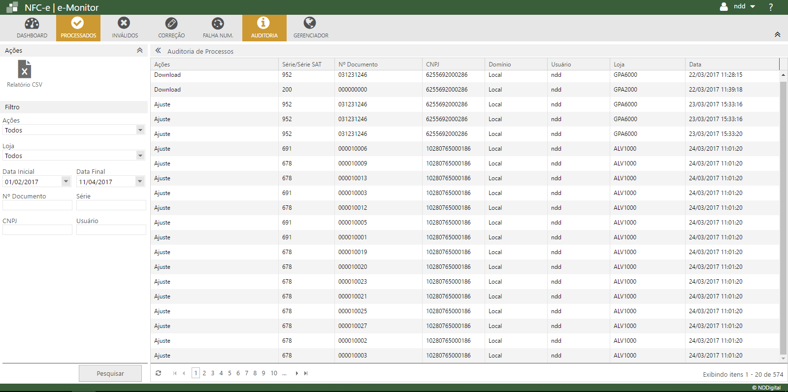 Nesta aba será disponibilizado, um relatório dos processos executados manualmente pelos usuários do sistema.
