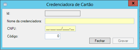o usuário poderá adicionar uma nova Credenciadora de Cartão;