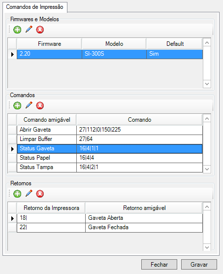 2.1.1. Aba Comandos de Impressão - Firmwares e Modelos: |