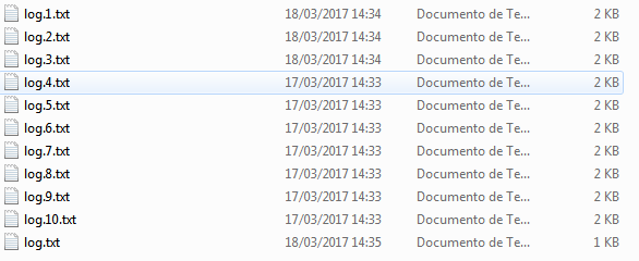 Por padrão, os arquivos de log são separados de acordo com o tamanho e o dia que foram gerados.