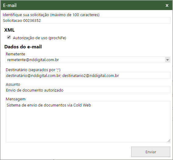 Após selecionar os documentos e clicar em E-mail, será exibido a seguinte tela: