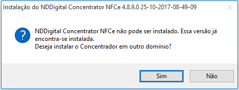 O instalador do Concentrador faz a verificação se a versão que está instalada é a mesma versão que está sendo executada pelo instalador. A tela abaixo será exibida. Caso deseje instalar em outro domínio, clique em Sim.