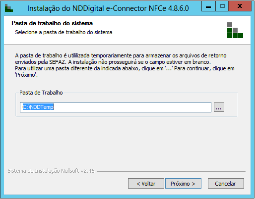 Se desejar, altere o local do diretório de trabalho do sistema e clique em Próximo.