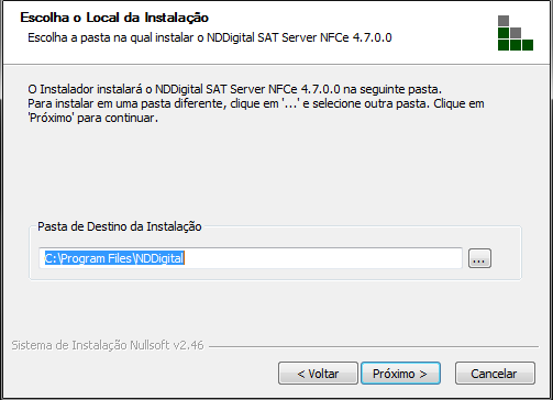 Na tela abaixo, se desejar, altere o diretório de instalação e então, clique em Próximo.