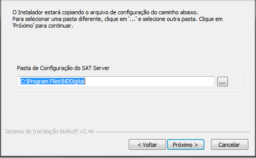 Na tela abaixo, se desejar, altere o diretório de onde ficará o arquivo de configuração e então, clique em Próximo.
