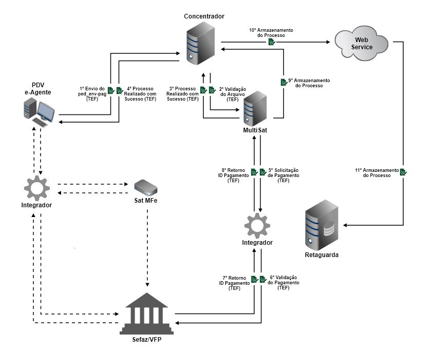 •Para o quinto passo do processo TEF, o arquivo env-pag só será enviado para o Integrador, quando processado a nota (resp-fis automatico) ou quando enviado a resposta fiscal (resp-fis manual). |