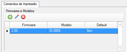 Comandos de impressão: Nesta área será possível cadastrar nomes amigáveis para a execução de comandos serial e seus respectivos retornos. Clique em