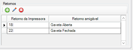 oRetorno da impressora: Deverá ser cadastrado o retorno obtido. No envio de mais de um comando serial para o mesmo comando amigável, o retorno obtido será separado com o caractere #.