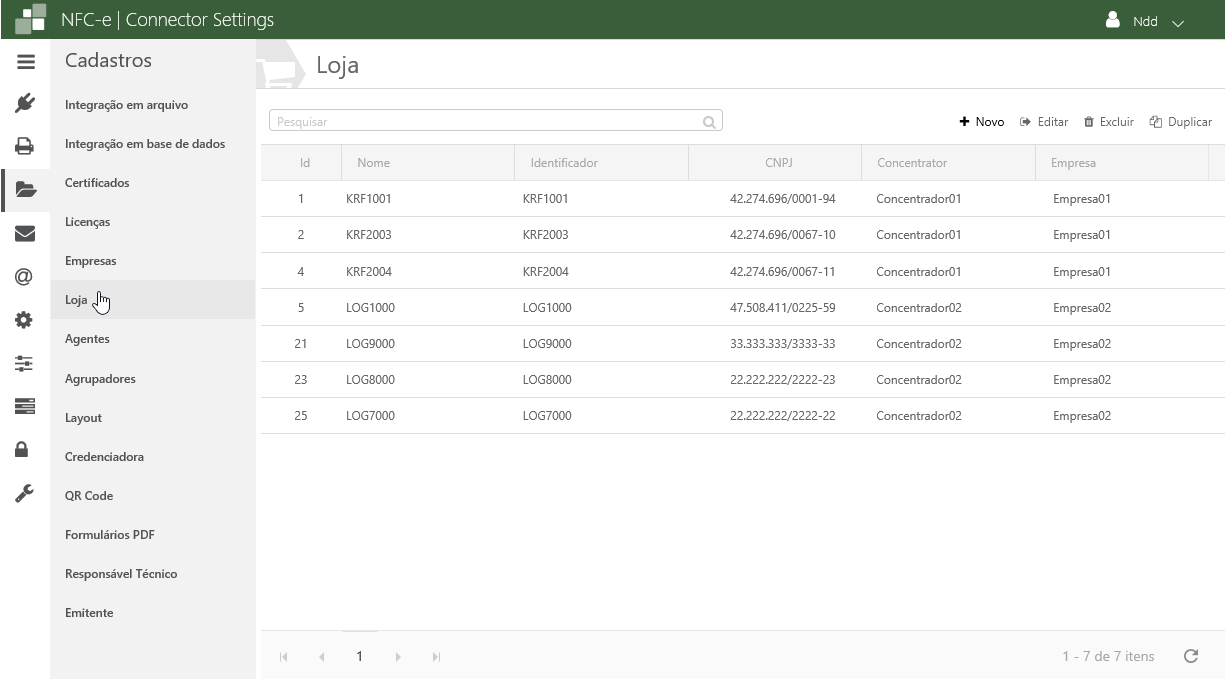 Acesse o e-Connector Settings e na área de cadastros, clique em Loja. A seguinte tela é apresentada:
