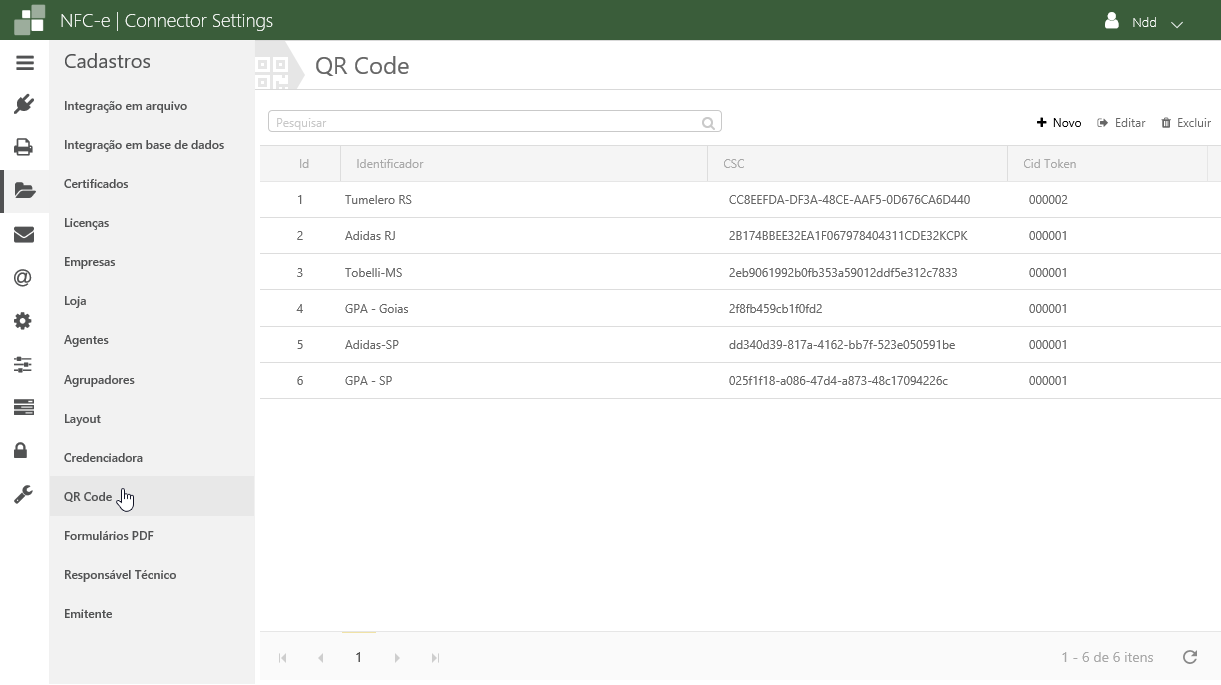 Acesse o e-Connector Settings e na área de cadastros, clique em QRCode. A seguinte tela é apresentada: