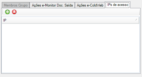 Esta opção deve ser utilizada para realizar um bloqueio de acesso aos módulos e-Monitor e e-ColdWeb por IP. Ao ser selecionado um usuário e inserido um IP na aba IPs de acesso, este usuário somente conseguirá acessar os módulos e-Monitor e e-ColdWeb do computador que possuir o IP informado.