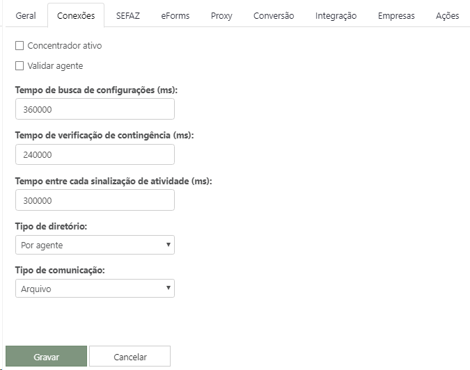 Através desta aba é possível inserir informações de como o concentrador vai receber os arquivos do PDV ou Agent.
