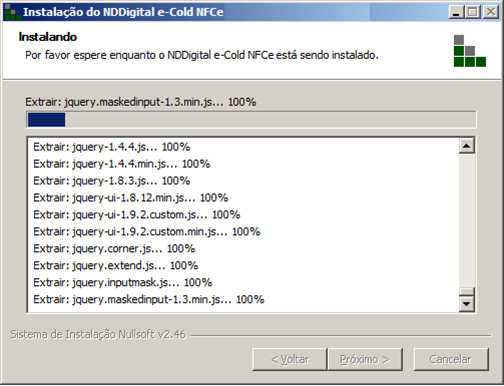 A tela abaixo exibe o progresso da instalação, aguarde a conclusão do processo.