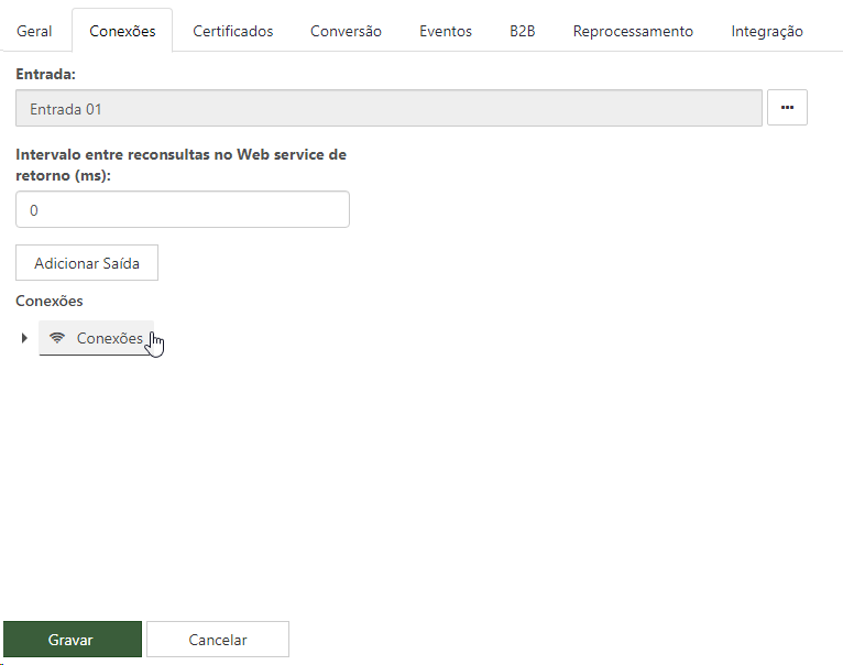 ✓ Entrada: Selecione uma conexão de entrada previamente cadastrada.