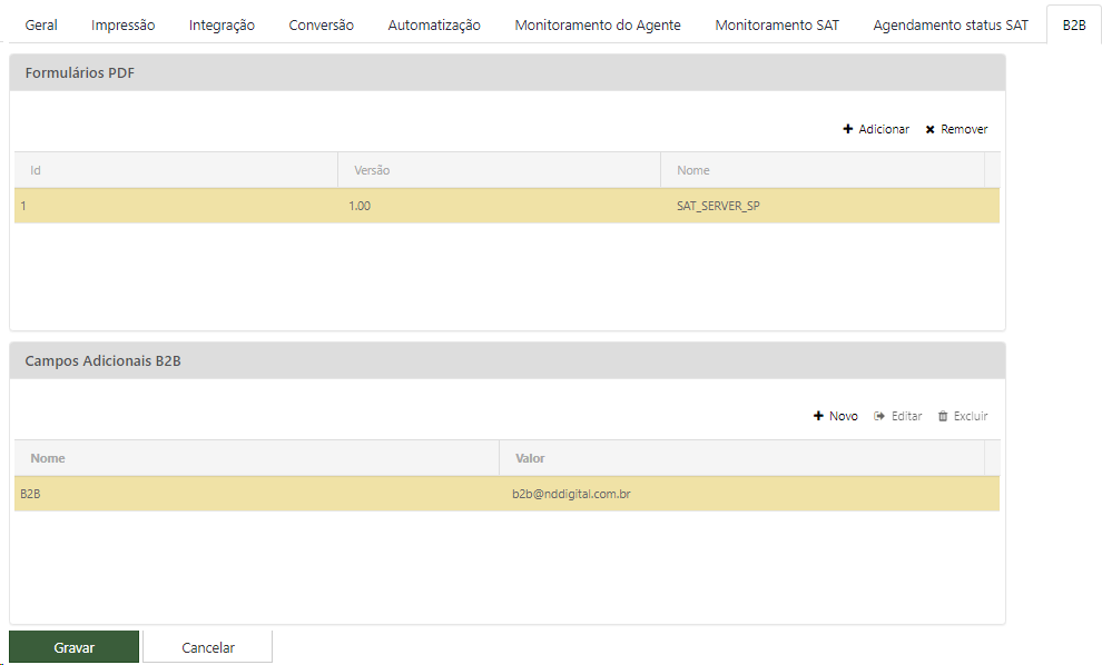 Atualmente utilizado para configuração de B2B e B2B Diretório. Para inserir estes campos clique em + Novo e informe os valores conforme descrito abaixo.