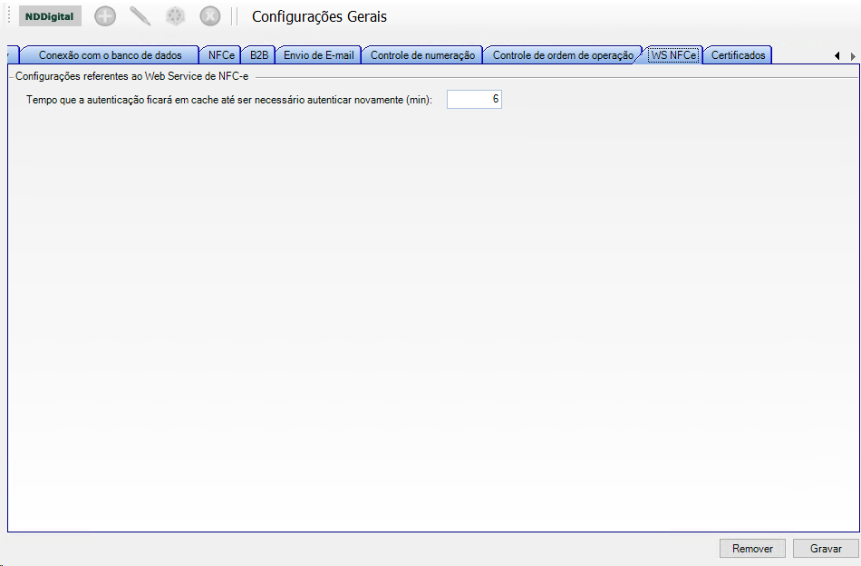 ✓Tempo que a autenticação ficará em cache até ser necessário autenticar novamente (min): Deve ser informado o tempo em que será necessária uma nova autenticação do Web Service.