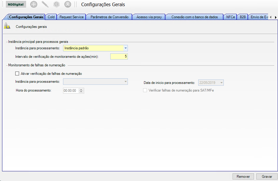 ✓ Instância para processamento: Possibilidade de configurar a instância onde será determinada a verificação das falhas de numeração;