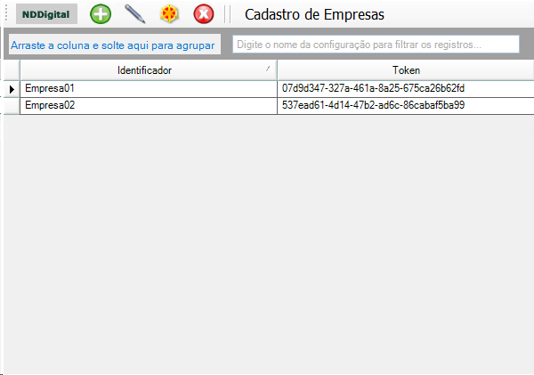 Acesse o e-Connector Settings e na área de configurações, clique em Empresas. A seguinte tela é apresentada: