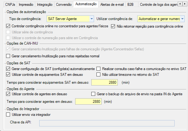 ✓ Gerar cancelamento/inutilização para falhas de comunicação (Agente/Concentrador/Sefaz): Habilitando este checkbox, serão cancelados automaticamente os documentos que falharem comunicação com a SEFAZ/Concentrador;