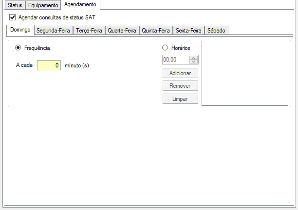 Caso o usuário opte pela opção Frequência a escolha mínima será de 30 minutos. Se optar por Horários poderá adicionar o horário que quiser para o agendamento.