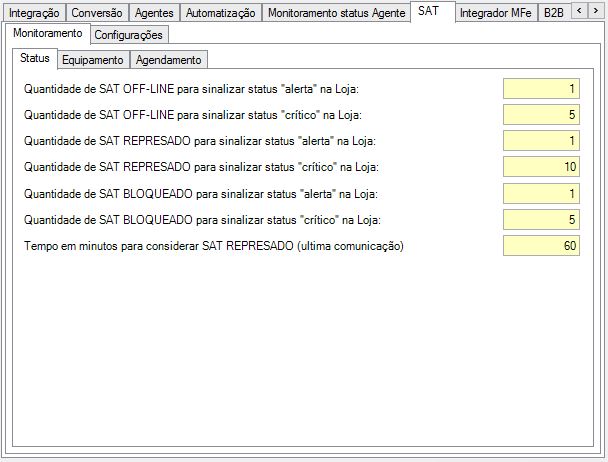 ✓ Integrar status de alerta do SAT: Para habilitar a integração do status de alerta de equipamento/contingência SAT, basta ativar essa opção;