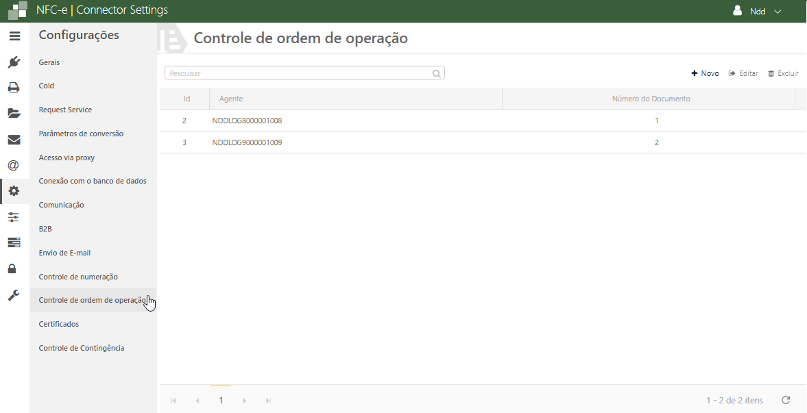 Acesse o e-Connector Settings e na área de configurações, clique em Controle de ordem de operação. A seguinte tela é apresentada: