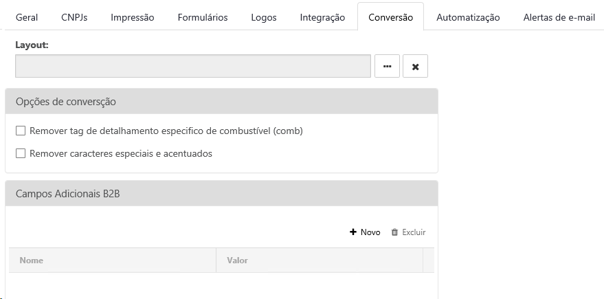 ✓ Remover tag de detalhamento específico de Combustíveis (comb): Ao marcar esta opção, será realizado a remoção automática da tag comb;