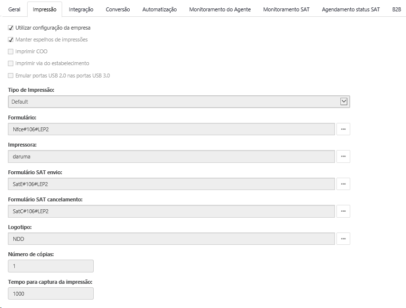 Ao marcar a opção Utilizar impressão, os demais campos desta aba serão habilitados. Preencha-os conforme descrito abaixo.