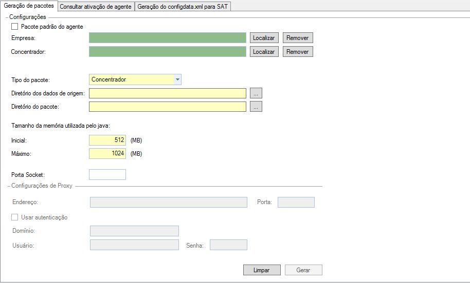 ✓ Tipo do pacote: Selecione Agente ou Concentrador, este campo não estará habilitado caso a opção pacote padrão do agente estiver marcada;